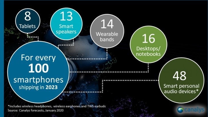 Canalys发布了一份新陈述,猜测个人音频将是未来几年增加最快的智能设备类别,但智能手机将继续坚持其作为抢先智能设备的位置。