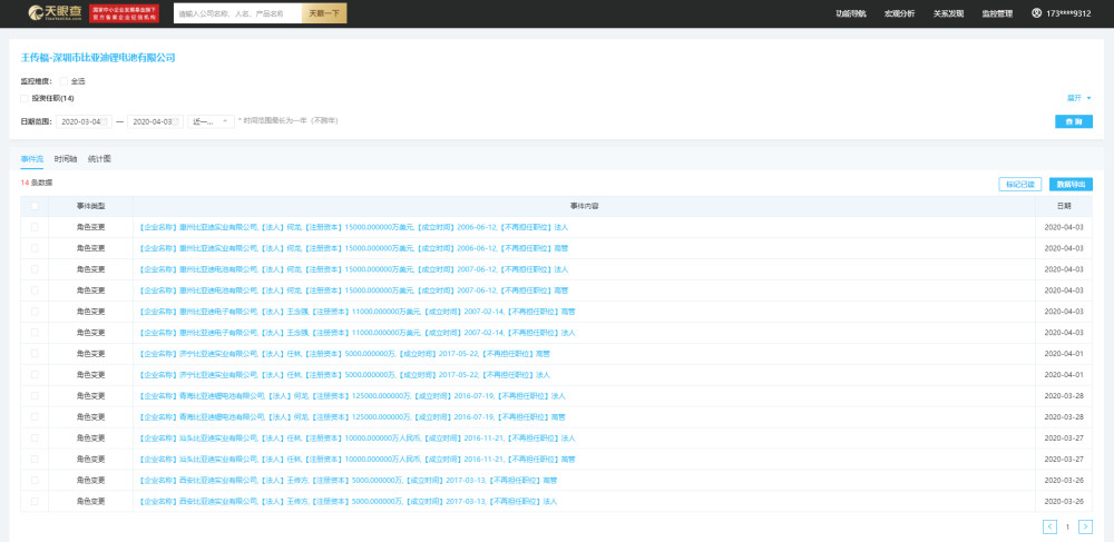 针对上述频频卸职的行为,4月3日,比亚迪方面回应中新经纬客户端称:“近期,比亚迪连续对多家法人子公司的法人进行工商改变,将法人子公司的负责人改变为实践事务负责人,除法人改变外,公司的运营、股权结构等均未发作显着的改变。”